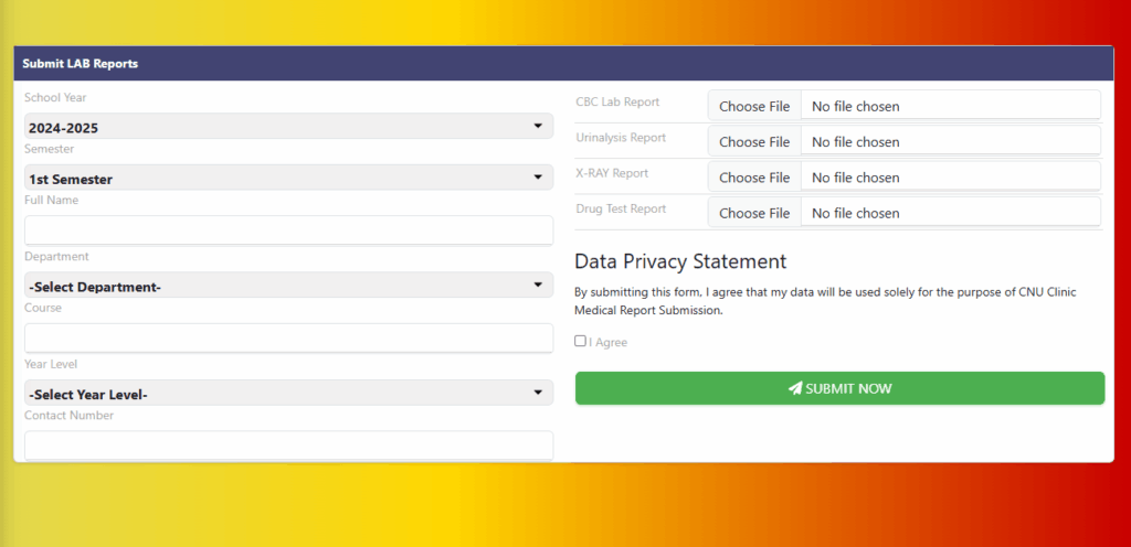 - Click on the link posted in the CLINIC MAIN CAMPUS PORTAL or https://portal.cnu.edu.ph/cosas