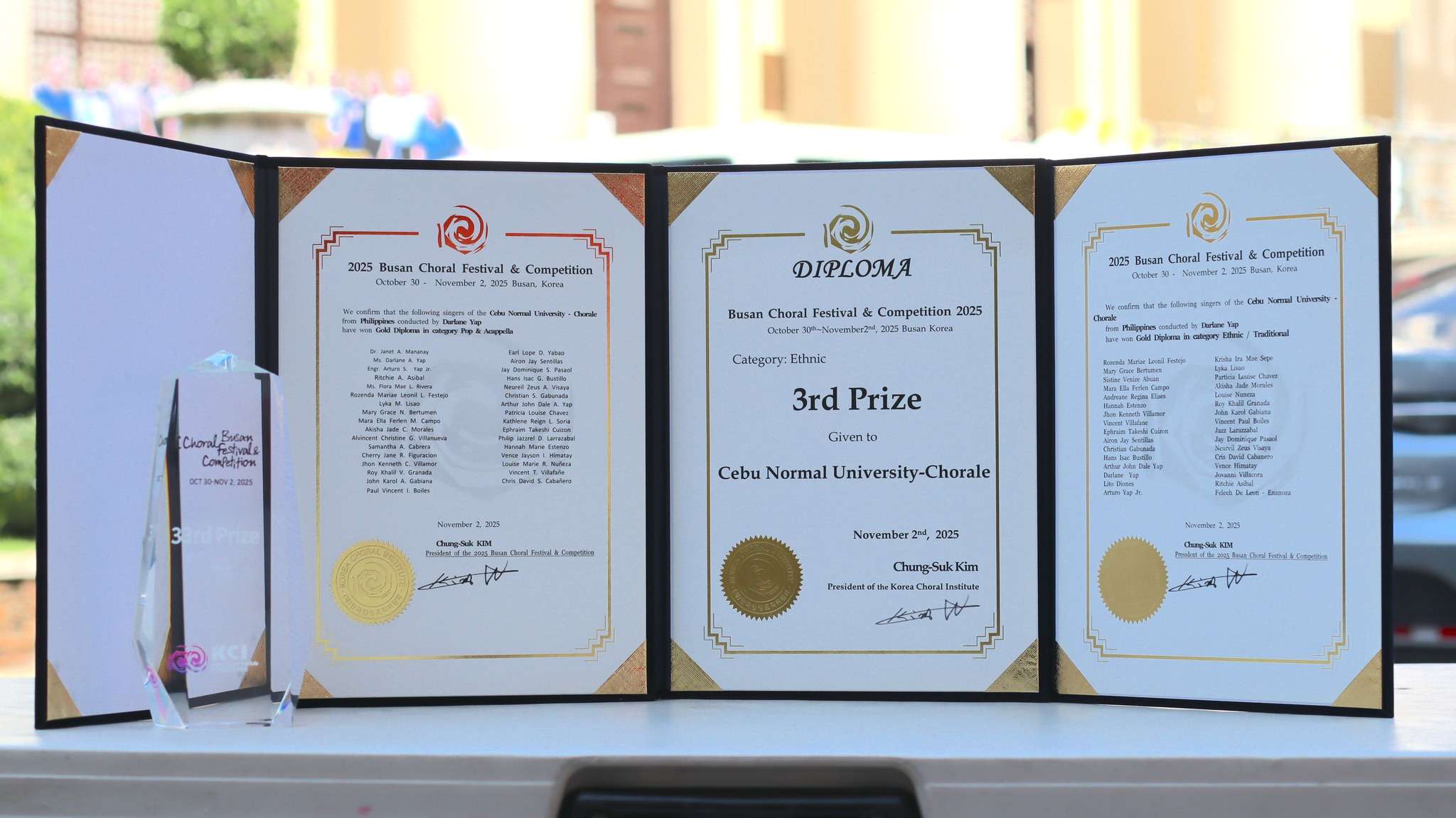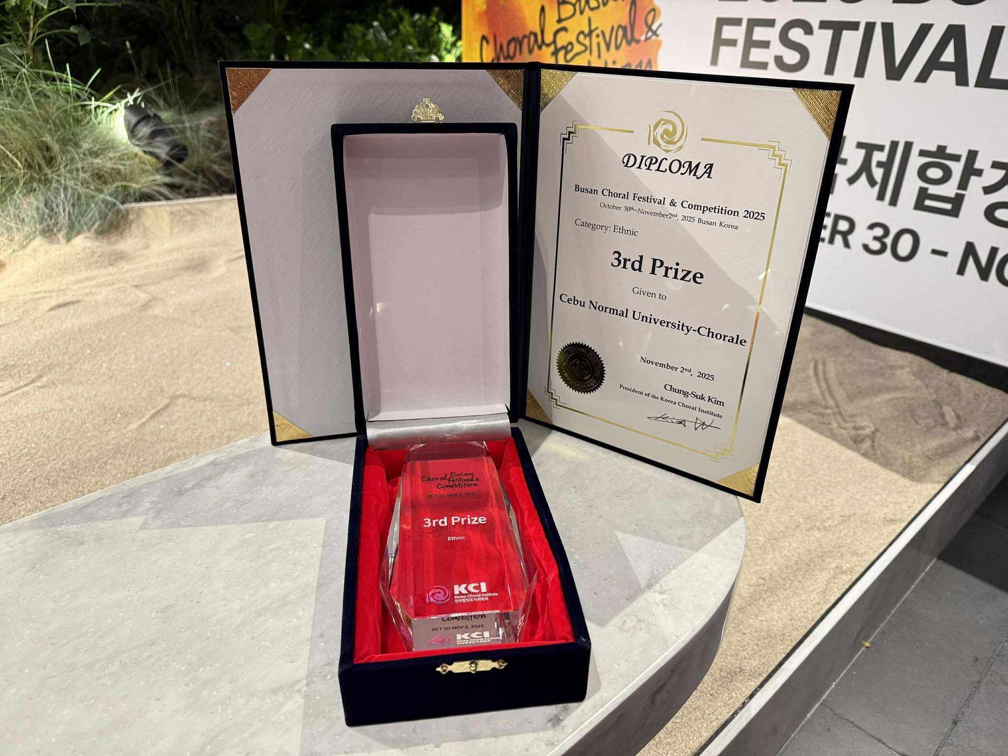 The Cebu Normal University (CNU) Chorale has once again solidified its global presence after winning 3rd place and bagging teo gold diplomas in the 21st Busan International Choral Festival and Competition held in Busan, South Korea, from October 30 to November 2, 2025.