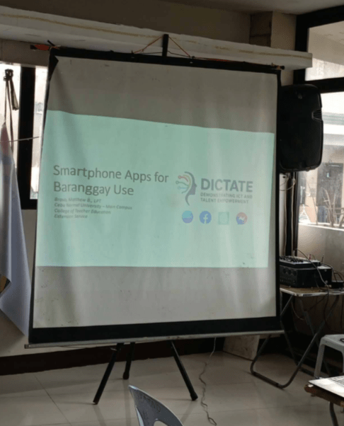 On December 2, 2025, the project team of “Demonstrating ICT and Talent Empowerment (DICTATE)” carried out their extension activity in Barangay San Antonio, Cebu City. The initiative centered on strengthening Information and Communications Technology (ICT) skills, which involve the ability to understand, navigate, and utilize a wide range of technological tools and software. These skills encompass supporting others in performing various digital tasks—such as making video calls, searching the internet, or operating mobile devices like tablets and smartphones—as well as handling basic technology functions, including starting a computer, using printers and copiers, and capturing photos or videos with digital cameras.