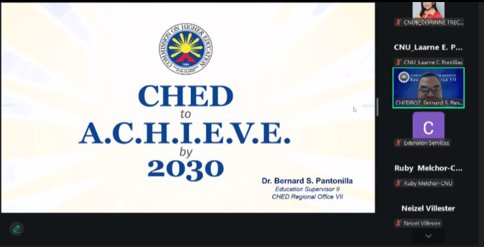 To further improve the university’s extension practices, the Cebu Normal University (CNU) Extension Services Offices, led by its director, Prof. Laarne Pontillas, conducted the “Stakeholder Forum on CNU Extension Innovation, Project Proposal Writeshop, and In-House Review for CHED-Aligned Community Engagement” online from December 9 to 11, 2025.
