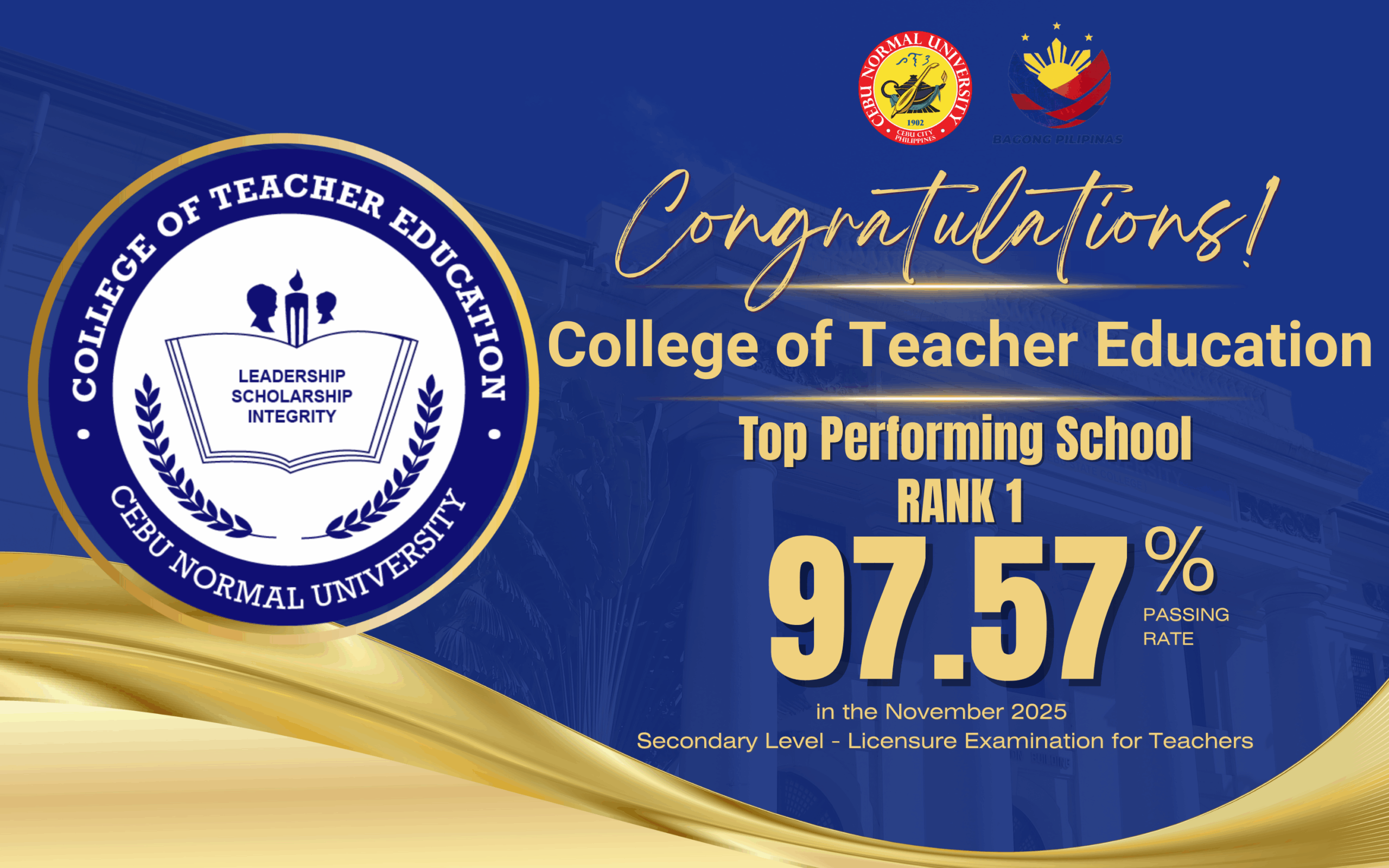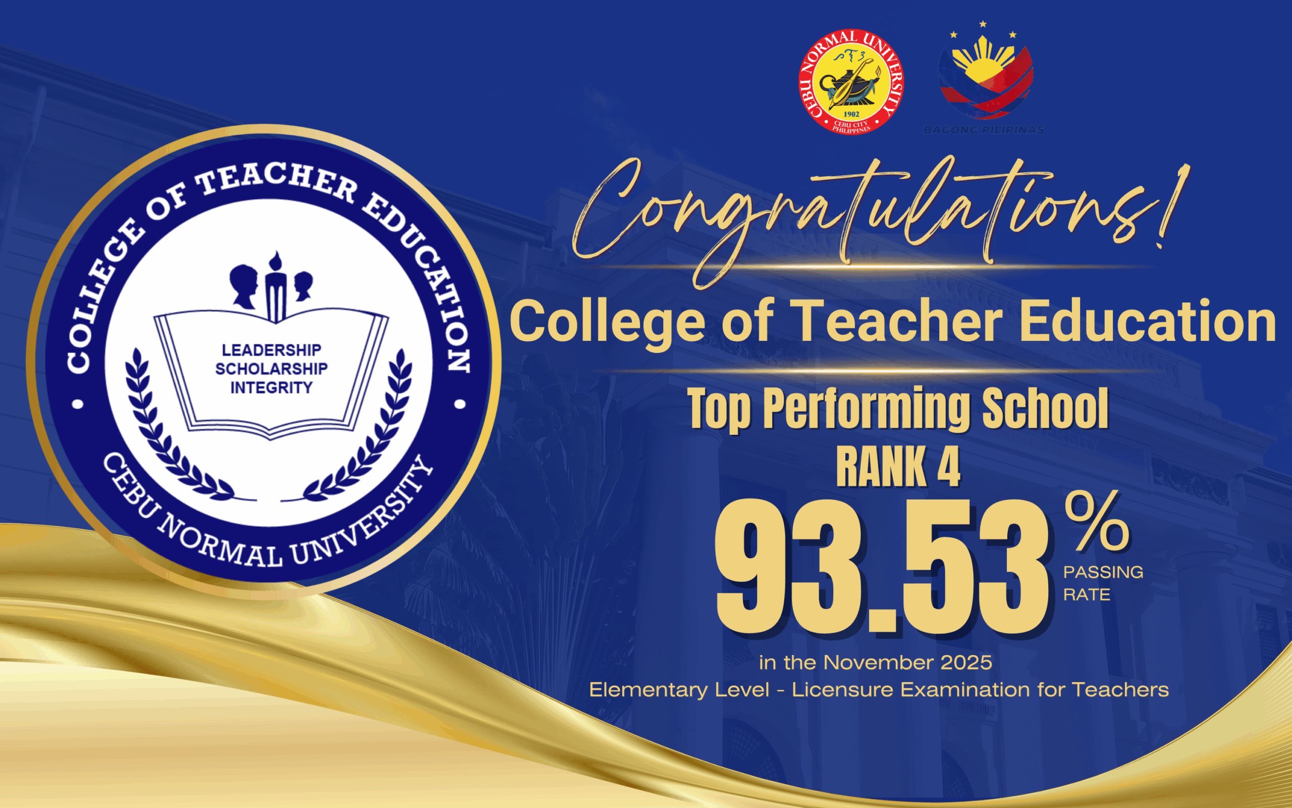 Cebu Normal University was established in 1902 as a provincial normal school and a branch of the Philippine Normal School. It became an independent institution in 1924, a chartered college in 1976, and a university in 1998. It is one of the oldest educational institutions in Cebu.